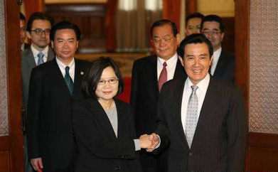 馬英九、蔡英文雙英會后握手超過30秒。(臺媒圖)