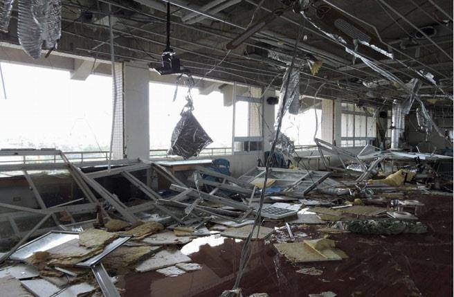 臺東縣高普考試場東海中學遭強臺侵襲一片狼藉。(圖片來源:臺灣《中時電子報》)
