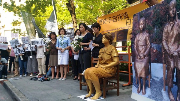 中國(guó)臺(tái)灣網(wǎng)8月15日訊 據(jù)臺(tái)灣“東森新聞云”報(bào)道,臺(tái)婦女救援基金會(huì)等多個(gè)民間團(tuán)體15日下午在日本交流協(xié)會(huì)前舉行“歷史不容抹滅,日本政府道歉”抗議行動(dòng),現(xiàn)場(chǎng)民眾高喊“歷史不容抹滅,日本政府道歉;正義不容妥協(xié),還我阿嬤尊嚴(yán)”等口號(hào),也有藝術(shù)表演者扮成慰安婦阿嬤雕像,要求日本政府正式向慰安婦道歉及賠償。