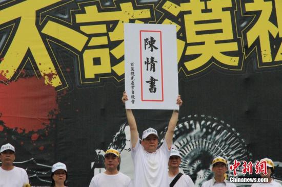 9月12日,臺灣觀光業者2萬人上街游行“要生存”,向臺當局提交《陳情書》。中新社記者 徐德金 攝