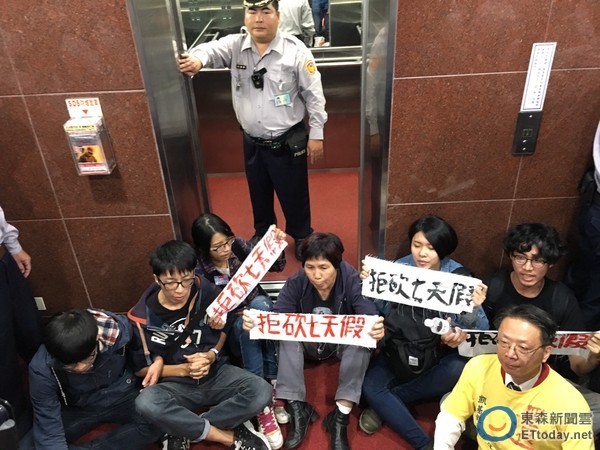 中國(guó)臺(tái)灣網(wǎng)11月16日訊 據(jù)臺(tái)灣“東森新聞云”報(bào)道,臺(tái)“立法院”16日上午召開“勞基法”修法公聽會(huì),民進(jìn)黨、國(guó)民黨、時(shí)代力量與親民黨“立法院”黨團(tuán)總共邀了28名代表進(jìn)場(chǎng),會(huì)議一開始,現(xiàn)場(chǎng)就氣氛火爆。在“召委”陳瑩宣布休息10分鐘后,勞團(tuán)代表更高喊抗議,過程中發(fā)生推擠沖突,造成陳瑩跌倒,被警方帶出議場(chǎng)安置在小房間;另外,已絕食288小時(shí)的勞團(tuán)代表許惟棟也不支倒地,隨后被送往臺(tái)大醫(yī)院。(中國(guó)臺(tái)灣網(wǎng) 盧佳靜)