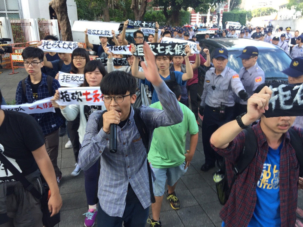 抗議學生持“拒砍七天假”標語轉往蔡英文辦公室持續抗議。(圖片來源:臺灣《聯合報》)