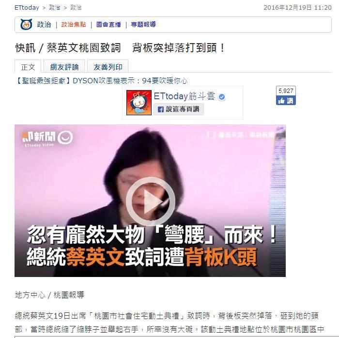 臺灣媒體說,隨扈見狀快速上前將背板扶起,所幸該“肇事”背板材質較軟,小英并無大礙,但受到驚嚇。