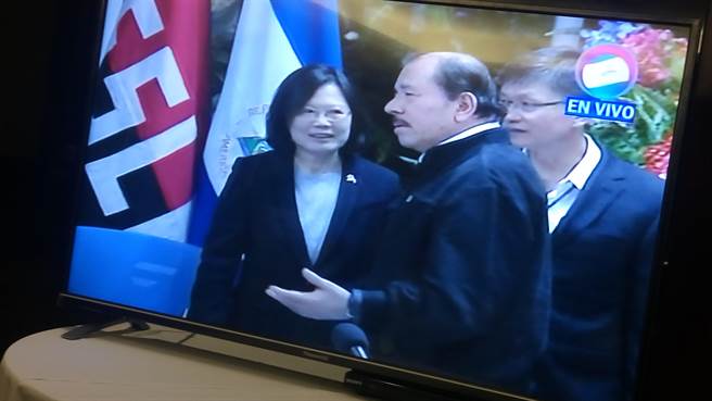 電視機中的蔡英文與奧爾特加(來源:臺“中時電子報”)