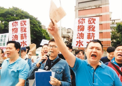 國民黨黨工抗議“黨產會”追殺國民黨。 圖片來源:風傳媒