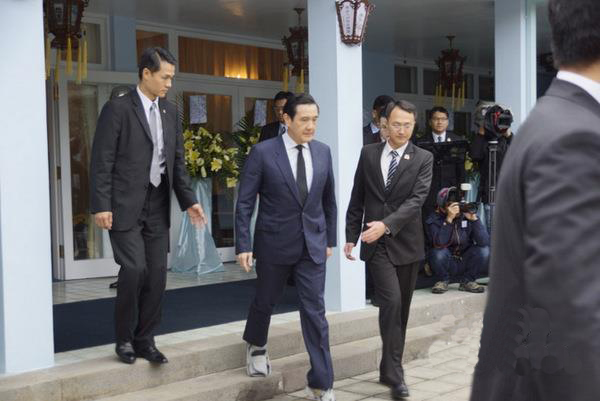 據(jù)中評社報道,在前馬辦秘書長曾永權(quán)等人陪同下,馬英九今日先在陵寢中庭,擔(dān)任主祭者,依照儀式獻(xiàn)花追思。接著進(jìn)入陵寢,站在蔣經(jīng)國遺照與靈棺之前,又追思了3分鐘,表情哀戚,黯然離開。