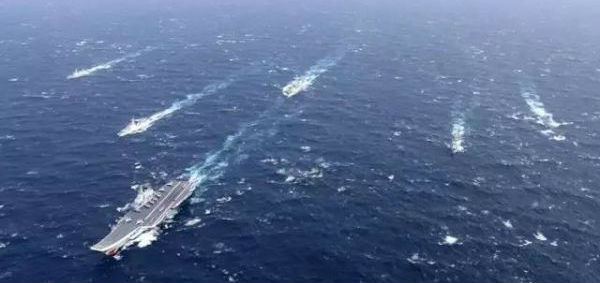 中國海軍航母編隊(duì)在海上航行。(圖片源自中國軍網(wǎng))