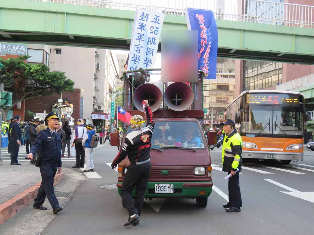 中正二分局舉牌警告,抗議的退伍軍人回嗆人民有行動的自由,只是路過而已。還有路人嗆聲,雙方扭打,警方很快上來制止無人受傷。隨后全臺教育產業總工會(全教產)隨后從景福門出發到南海路與退伍軍人集合一起游行抗議。