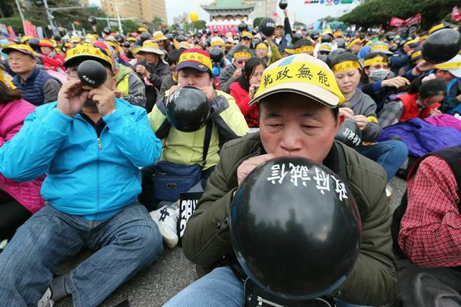 數萬抗議臺當局年金改革群眾于農歷春節前夕,云集到蔡辦門前的凱達格蘭大道,怒轟民進黨當局執政無能,要蔡英文下臺。(圖片來源:臺灣《中時電子報》)