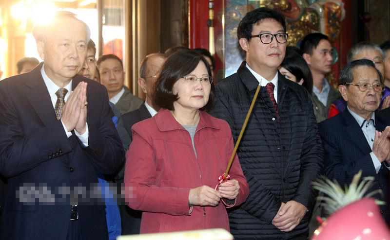 蔡英文大年初一赴臺北覺修宮,參加還愿上香祈福及揭匾儀式。(圖片來源:臺灣“中央社”)