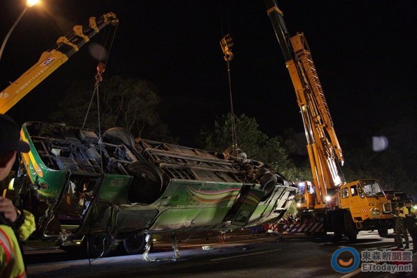 臺灣游覽車13日晚發生翻覆事故,造成33人死亡。(圖片來源:臺灣“東森新聞云”)