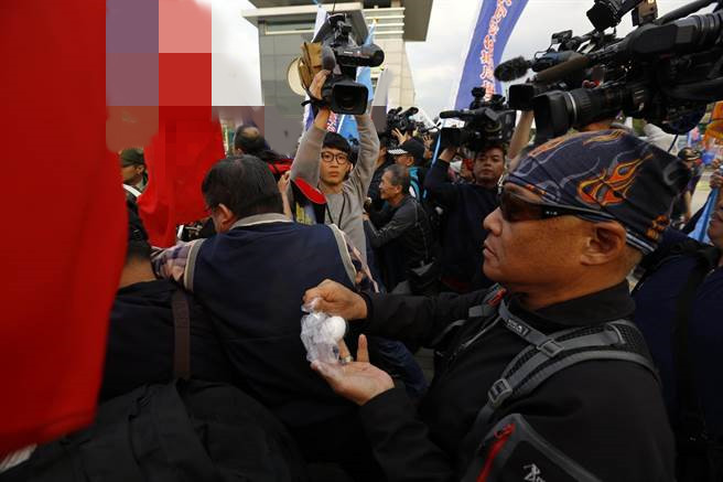 退伍軍人丟擲煙霧彈,場(chǎng)面混亂。(圖片來(lái)源:臺(tái)灣“中時(shí)電子報(bào)”)