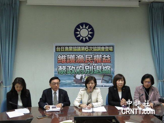 國民黨團今天是由書記長王育敏、副書記長呂玉玲、許淑華、陳宜民和黨籍“立委”王惠美、陳超明等,在黨團記者室召開“臺日漁業(yè)協(xié)議第6次協(xié)調會登場 維護漁民權益 蔡政府別退縮”記者會。