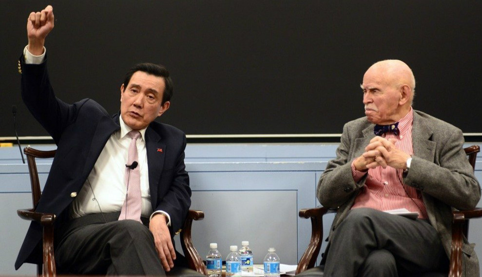 馬英九(左)2日應(yīng)邀在紐約大學(xué)法學(xué)教授孔杰榮的課堂上座談(圖片來源:臺(tái)“聯(lián)合新聞網(wǎng)”)