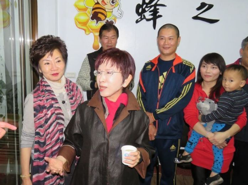 中國臺灣網3月13日訊 據臺灣《聯合報》報道,國民黨主席洪秀柱13日傍晚,抵苗栗縣頭份市拜訪青年養蜂農劉國科,親切的與劉國科2個年幼的兒子打成一片,童言童語玩親親,一起喝鮮甜的蜂蜜水。洪秀柱以采蜜被蜂群攻擊、叮咬,都要咬緊牙關忍下來,期勉基層黨工,務必做好這次黨內選舉。