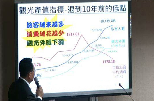 “立委”陳歐珀指出,雖然來客旅客數有成長,但消費額度卻退到10年前的觀光外匯水平。(臺媒圖)