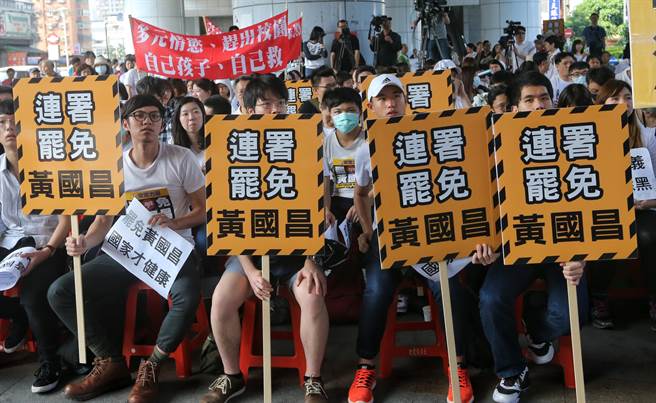 民眾舉牌要求罷免黃國昌。(圖片來源:臺灣“中時電子報”)