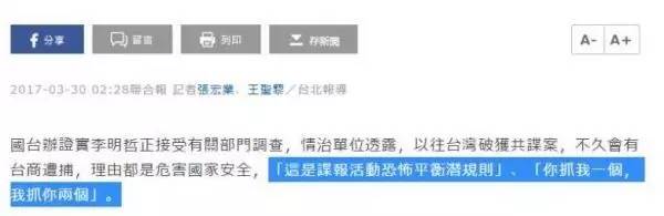 臺灣媒體對于此案的報道,已經用了“諜報”之類的字眼。