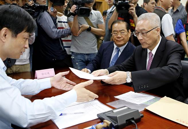 吳敦義前往國民黨中央黨部繳交逾20萬份黨員聯署書,并完成黨主席參選登記。(臺媒圖)