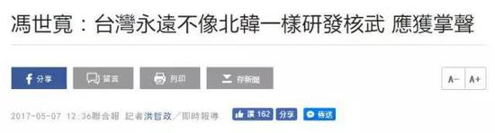 今天,臺灣“防長”馮世寬在參加一研討會發言時稱,臺灣永遠不會像朝鮮一樣搞核武器,應當獲得掌聲……