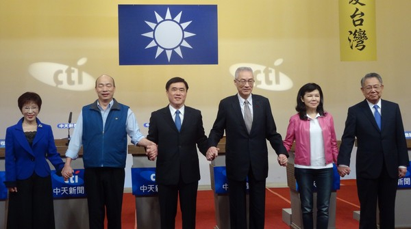 中國國民黨主席候選人洪秀柱、韓國瑜、郝龍斌、吳敦義、潘維剛、詹啟賢等6位候選人今天皆出席國民黨主席電視辯論會,回應國民黨兩岸政策是否有新的定位及做法。
