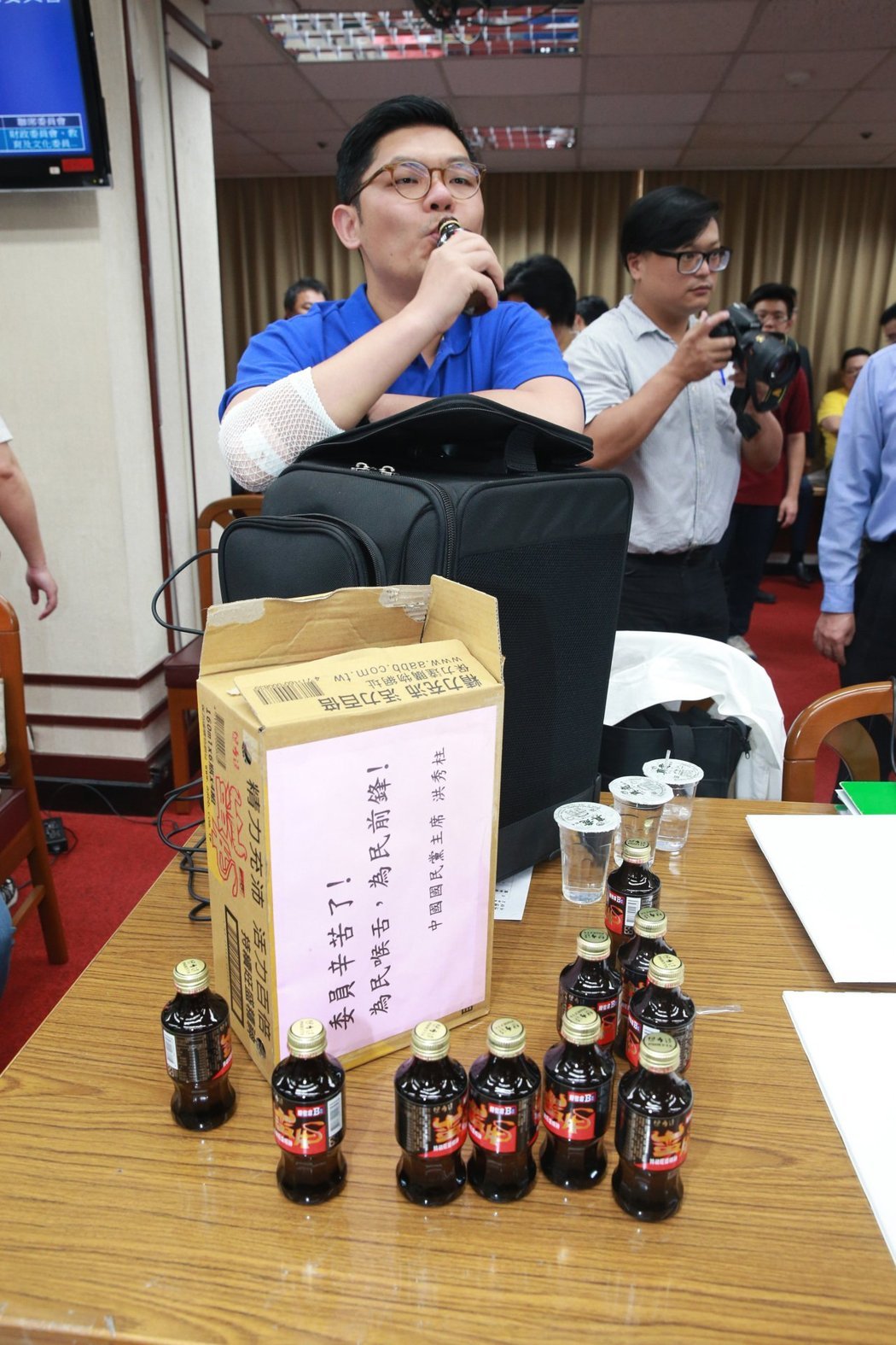 今日藍綠兩軍再度爆發(fā)激烈推擠沖突,人數(shù)占優(yōu)的民進黨團以人墻護衛(wèi)主席臺,國民黨團則不斷高喊“時程減半,八年改四年”等口號。藍、綠一度在主席臺前混戰(zhàn)、推擠,哨子、喇叭滿天響,面粉滿天飛,不少“綠委”都灰頭土臉。中國國民黨主席洪秀柱一早特意送來一箱的“蠻牛”(維生素功能飲料),為國民黨“立委”加油,要他們“喝了,再上!”。