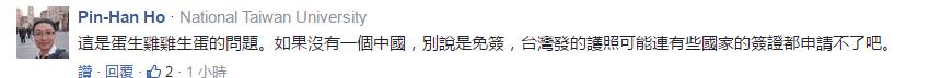 對此,有臺灣網友表示,“如果你直接說"中國臺灣",我想應該就沒這么多問題了,畢竟全球多數國家都承認一個中國”,還有網友表示,“這是蛋生雞雞生蛋的問題。如果沒有一個中國,別說是免簽,臺灣發的護照可能連有些國家的簽證都申請不了吧。”