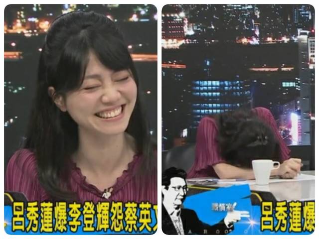 被問到“呂秀蓮怨蔡英文不找她”,高嘉瑜數(shù)度笑場,最后甚至痛苦到說不出話來,直接笑趴在桌上。(臺(tái)媒圖)