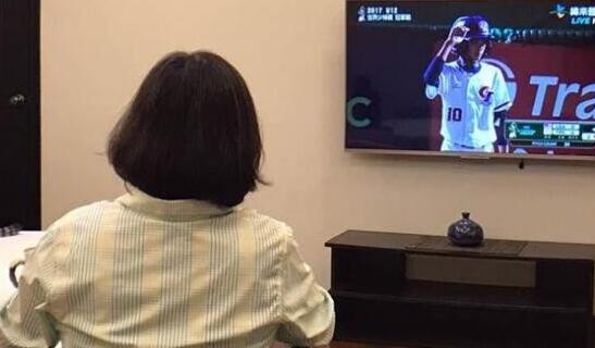 蔡英文昨晚曬出自己在電視機(jī)前觀看球賽的照片。(圖片來(lái)源:臺(tái)灣“中時(shí)電子報(bào)”)