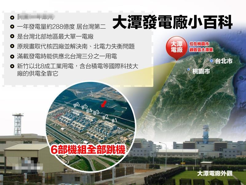 15日下午桃園大潭電廠6機組全部跳機,全臺無預警大停電,17縣市受影響。(圖片取自臺媒)