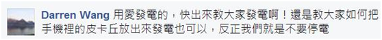 對于突然大跳電,民眾超傻眼,抱怨聲四起:“怎么會停電”、“熱死了”。有民眾將矛頭對準反核團體:“都是反核害的”、“反核的還敢出來該該叫嗎?”還有一名阿嬤搞對臺北會停電相當質(zhì)疑:“臺北也會停電?臺灣完了!”臺灣各地網(wǎng)友紛紛在PTT八卦版上回報情況,還針對各個與停電相關(guān)的議題進行討論。先前民進黨在反核游行中喊出的“用愛發(fā)電”更成為網(wǎng)友怒嗆焦點:“用愛發(fā)電的快出來教大家發(fā)電啊”、“難得的好時機,正是考驗用愛發(fā)電的好時機”……
