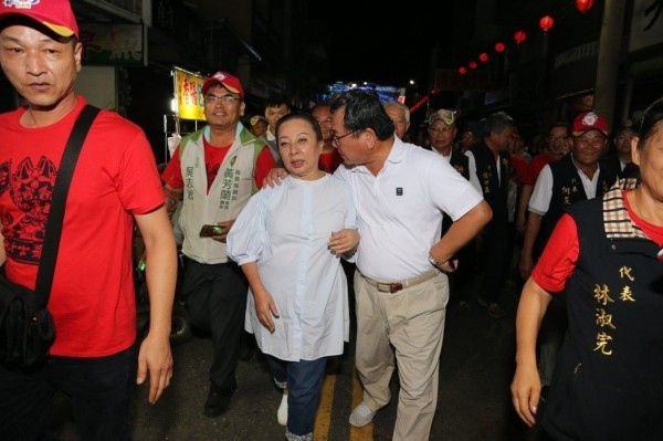 民進(jìn)黨籍嘉義縣長(zhǎng)張花冠,上周出席活動(dòng)過(guò)程中,遭民進(jìn)黨“立委”陳明文亮度強(qiáng)行摟肩。(臺(tái)媒圖)