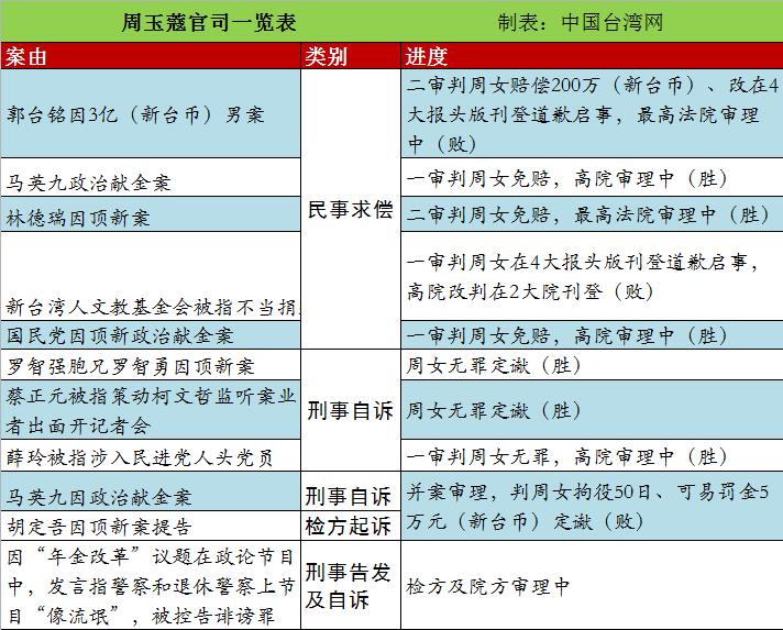 周玉蔻官司一覽表。