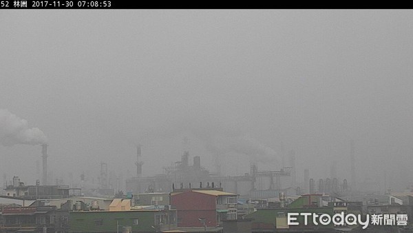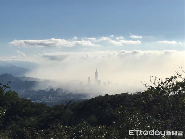 今秋最強(qiáng)空污,臺(tái)灣北部一片霧濛濛。(圖片來源:臺(tái)灣“東森新聞云”)