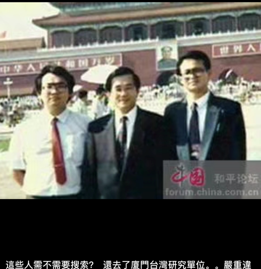 圖注:陳水扁(中)在天安門毛澤東像前留影,1991年7月23日至26日,陳水扁一連四天都在北京訪問。(圖片來源:臺灣網(wǎng)友王裕慶朋友圈)