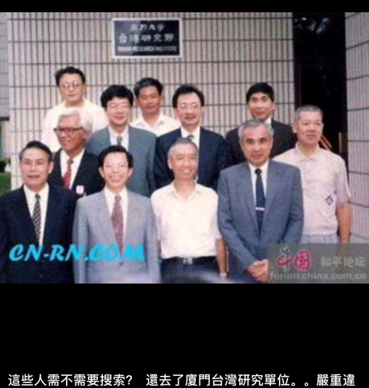 圖注:1993年,謝長廷(一排左二)率團(tuán)赴大陸訪問,隨團(tuán)的還有民進(jìn)黨的姚嘉文(一排右一)、蔡同榮(三排右一)、柯建銘(三排右二)、李慶雄(二排左一)。圖為眾人訪問廈門大學(xué)臺研所時留影。(圖片來源:臺灣網(wǎng)友王裕慶朋友圈)