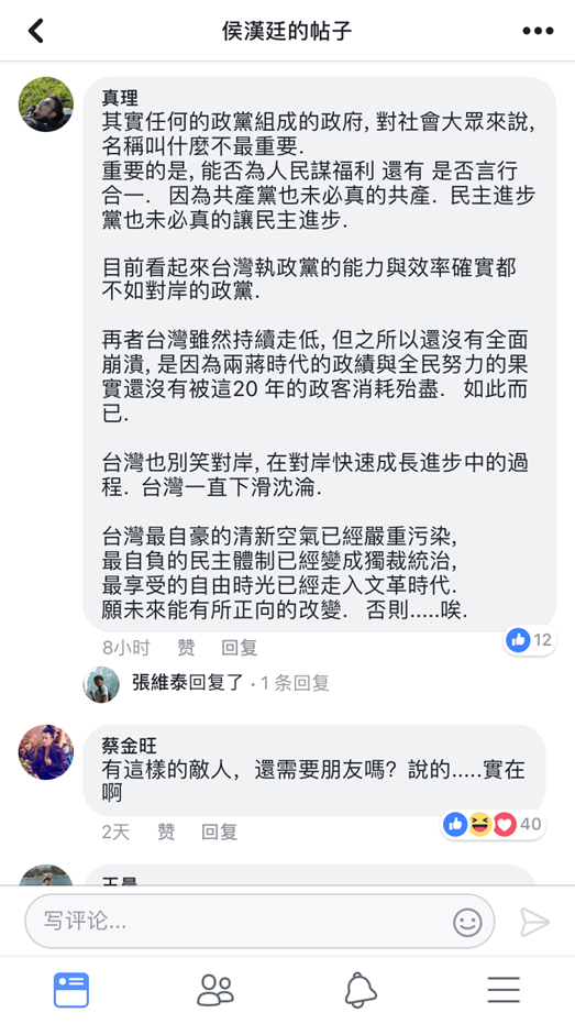 更多網(wǎng)友以文字表達(dá)對臺灣一邊標(biāo)榜“自由”一邊被內(nèi)耗拖垮現(xiàn)狀的憤怒: