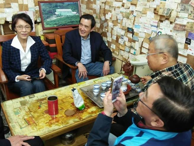 馬英九跨年夜到六合夜巿泡茶。(圖片來源:臺灣《中時電子報》)