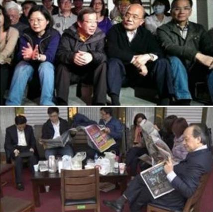 有粉絲專頁分享兩張民進黨同樣“守”在“立法院”的照片。(圖片來源:臺灣《中時電子報》)
