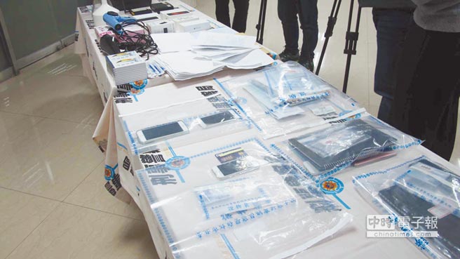 臺灣警方查扣計算機主機、手機9支、教戰手冊等贓證物。(圖片來源:臺灣“中時電子報”)