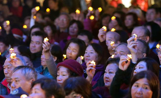 民眾點亮手中蠟燭緬懷蔣經(jīng)國。(圖片來源:臺灣《中時電子報》)