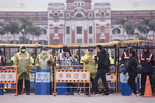 臺灣地區領導人蔡英文辦公室前布滿層層拒馬,宛如一座冷宮。(圖片來源:臺灣《中時電子報》)