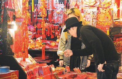 農(nóng)歷新年將至,為了方便民眾置辦年貨,臺北傳統(tǒng)年貨大街——迪化街2月1日火熱開賣。本次年貨大街熱賣的時間為14天,商家準(zhǔn)備了糖果、海鮮、干貨、飲品等各種產(chǎn)品供臺灣民眾挑選,現(xiàn)場紅燈籠及各種裝飾,呈現(xiàn)著喜氣洋洋的氣氛。圖為商家在準(zhǔn)備商品。(柴逸扉 攝)