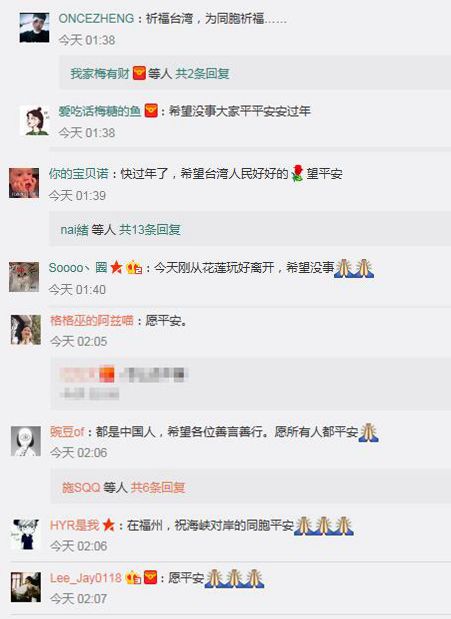 此外,在眾多的祈福帖中,還有一種令人無法忽視的溫暖聲音,那就是“同胞之情”。當如今的臺灣被“臺獨”勢力染指時、當一小部分臺灣民眾被蔡英文當局所謂的“臺灣價值”洗腦時,大陸網(wǎng)友則是在大災面前溫情喊話:臺灣與大陸是同胞,希望同胞平安!