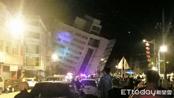 花蓮地震中的倒塌大樓。(圖片來源:臺灣“東森新聞云”)