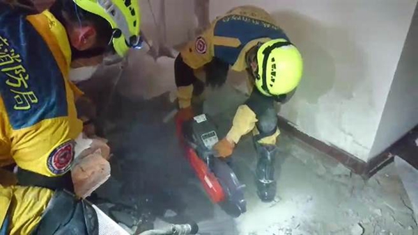 臺中市消防特搜隊挺進(jìn)災(zāi)區(qū)大樓救援,經(jīng)消防隊連夜救援,尋獲2名受困員工。(圖片來源:臺灣“中時電子報”)