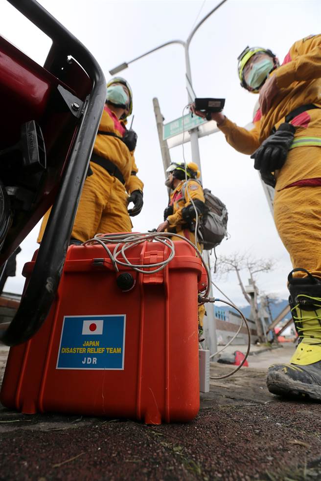 花蓮地震后,臺(tái)灣搜救隊(duì)員使用日方帶來的深層生命探測(cè)儀器。(圖片來源:臺(tái)灣《中時(shí)電子報(bào)》)