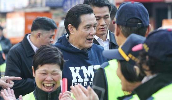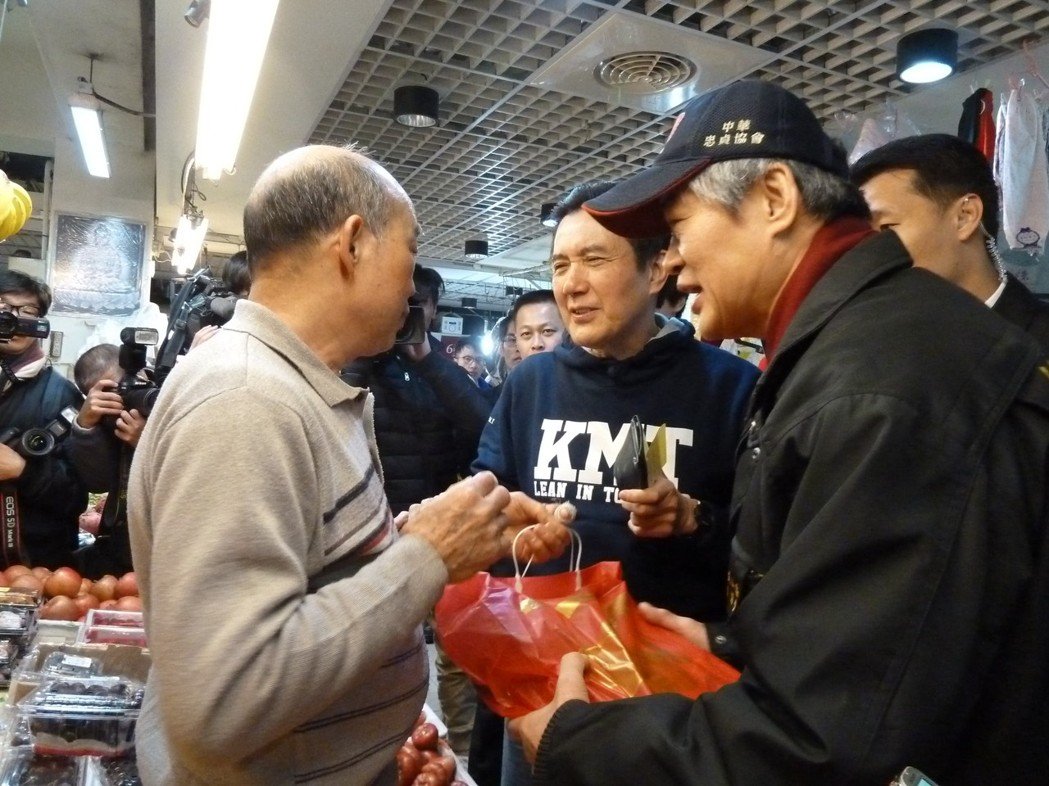馬英九買年貨獲民眾熱情簇?fù)砘貞?yīng)。(圖片來(lái)源:臺(tái)灣《聯(lián)合報(bào)》)