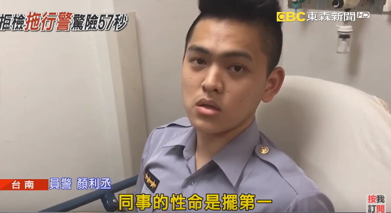 22歲警察顏利丞說,同事性命擺第一“這是身為一個警察,你應該要做的事情。”(圖片來源:臺灣東森新聞云)