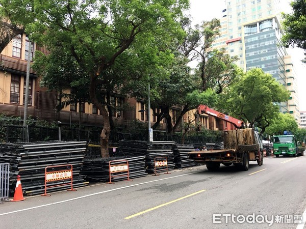 臺灣“立法院”外增加拒馬。(圖片來源:臺灣“東森新聞云”)
